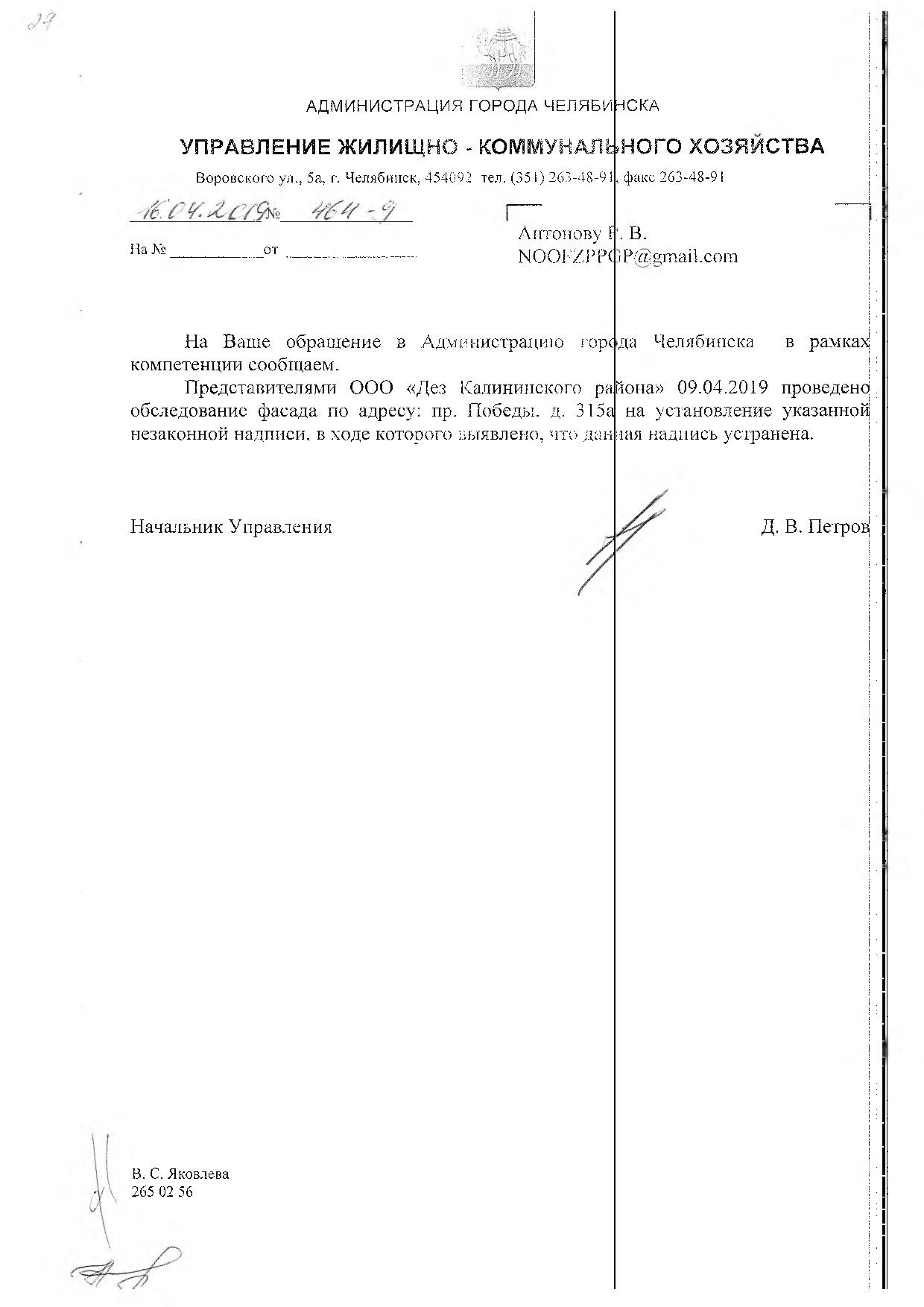 Номер жалобы:52458 Тип жалобы:Иные проблемы ЖКХ Название объекта: Регион:Челябинская область Город:Челябинск Адрес:проспект Победы, 315А Описание жалобы:Реклама наркотиков на фасаде дома. (Арка между домами) Статус: