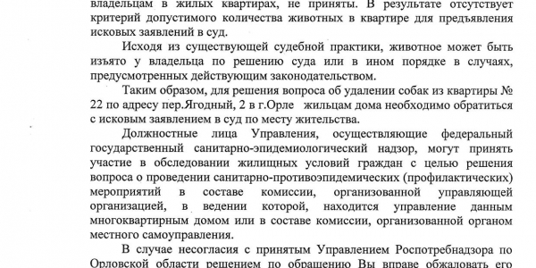 Адрес: пер. Ягодный, д.2, я проживаю в кв. 30, соседка ниже этажом - кв. 22. Про бывшие с ней скандалы расписывать не буду, но дело в том, что у неё в 1-комнатной квартире живут по разным данным от 4 до 12 собак. Лай от них слышно круглосуточно, так же антисанитария, запах такой, что зайдя в дом, приходится одновременно открывать дверь на площадку и все стеклопакеты. Только после этого можно заходить (сначала приходится стоять минут 10 в подъезде, типа "покурить", хотя я не курю). Многочисленные ее скандалы и крики в доме так же доводят. Она постоянно скандалит, кажется, с внучкой в доме и роняет разную утварь в доме в любое время дня и ночи. Жить невозможно, я даже не смогла жить там, хотя эта квартира мне перешла по наследству, и вынуждена жить у мамы. Помогите, пожалуйста, обратиться куда следует в таком случае. Если насчёт жилинспекции, подскажите, где это и как осуществляется жалоба. Жаловалась в полицию многократно - толку мало. В Роспотребнадзор - по иронии судьбы, они откликнулись, когда я находилась в больнице. И я уже их контакты потеряла. Денег судиться у меня нет, я безработная вдова. Статус: