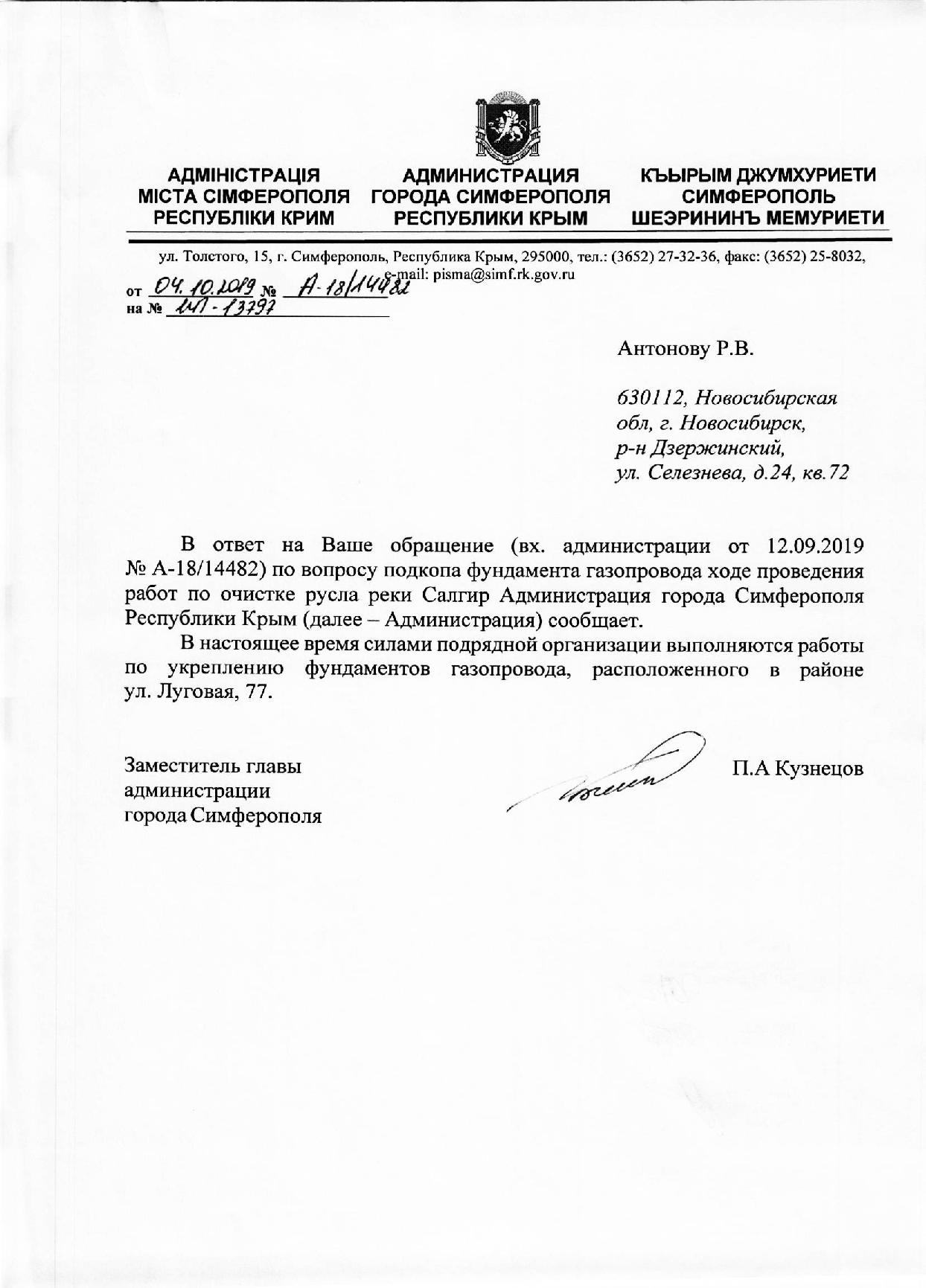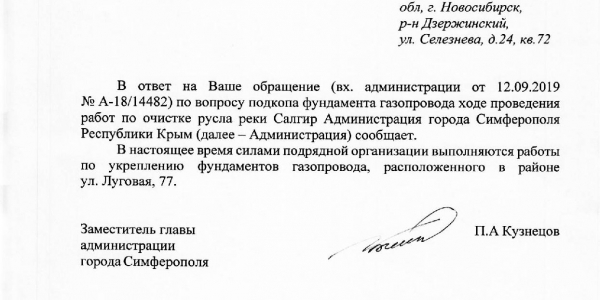 При очистке русла реки м. Салгир, в мкр. Луговом, в месте обозначенном красным цветом на приложенном скрине карты, ООО "АСГАРД" подкопало фундаменты газопровода, нарушена целостность склона под газопроводом, разрушен травяной покров вследствии чего продолжится обрушение склона и сползание фундаментов, что приведет к аварии на газопроводе. Прошу укрепить склоны вокруг фундаментов газопровода. Статус: