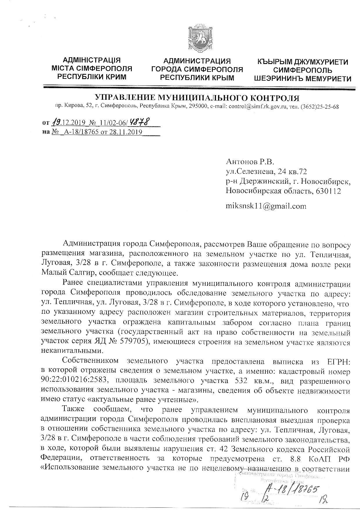 Номер жалобы:60145 Тип жалобы:Прочее Название объекта: Регион:Республика Крым Город:Симферополь Адрес:Тепличная улица, 5/28 Описание жалобы:Прошу принять меры к собственникам зем. участок ввиду использования не по назначению и захвата муниципальной земли, участки обозначены красными кружками на скрине карты: