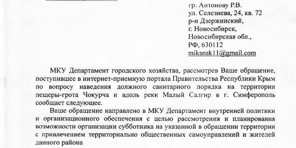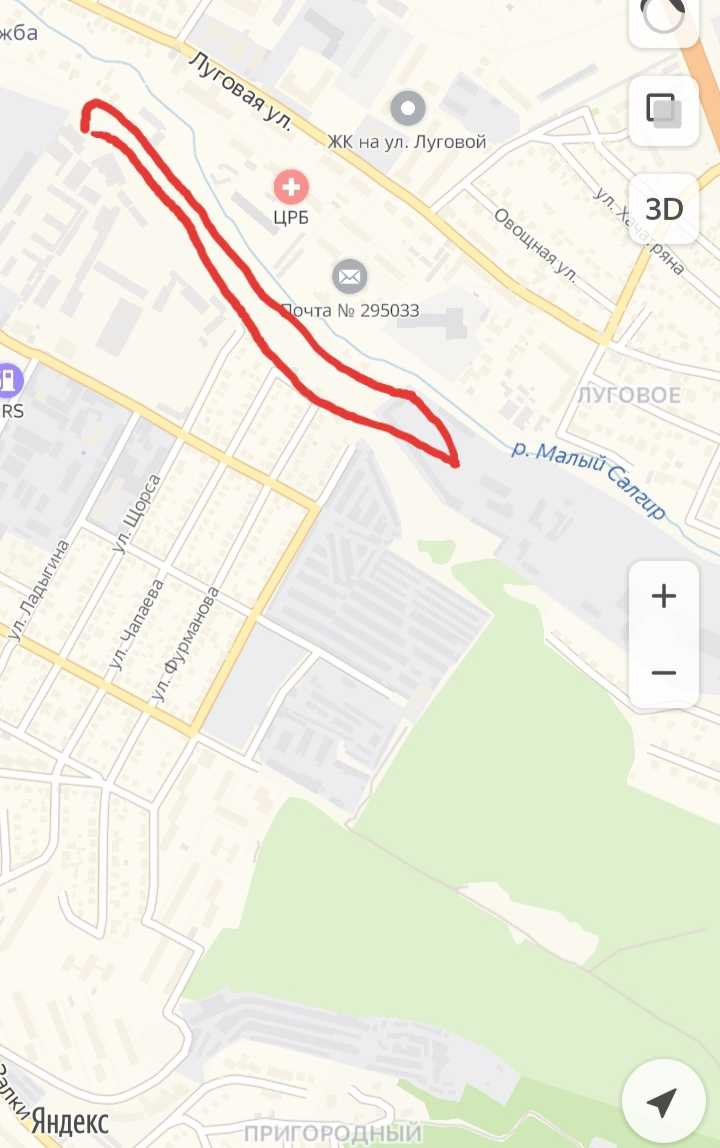 Номер жалобы:59795 Тип жалобы:Прочее Название объекта: Регион:Республика Крым Город:Симферополь Адрес:Луговая улица, 77 Описание жалобы:прошу очистить территорию возле памятника истории-стоянка древних людей от мусора, также все склоны вдоль реки засыпаны строительным мусором, бытовым мусором, прошу провести уборку территории. Территория для уборки указанна красным на скрине карты, от заборов промзоны и до русла реки. Статус: