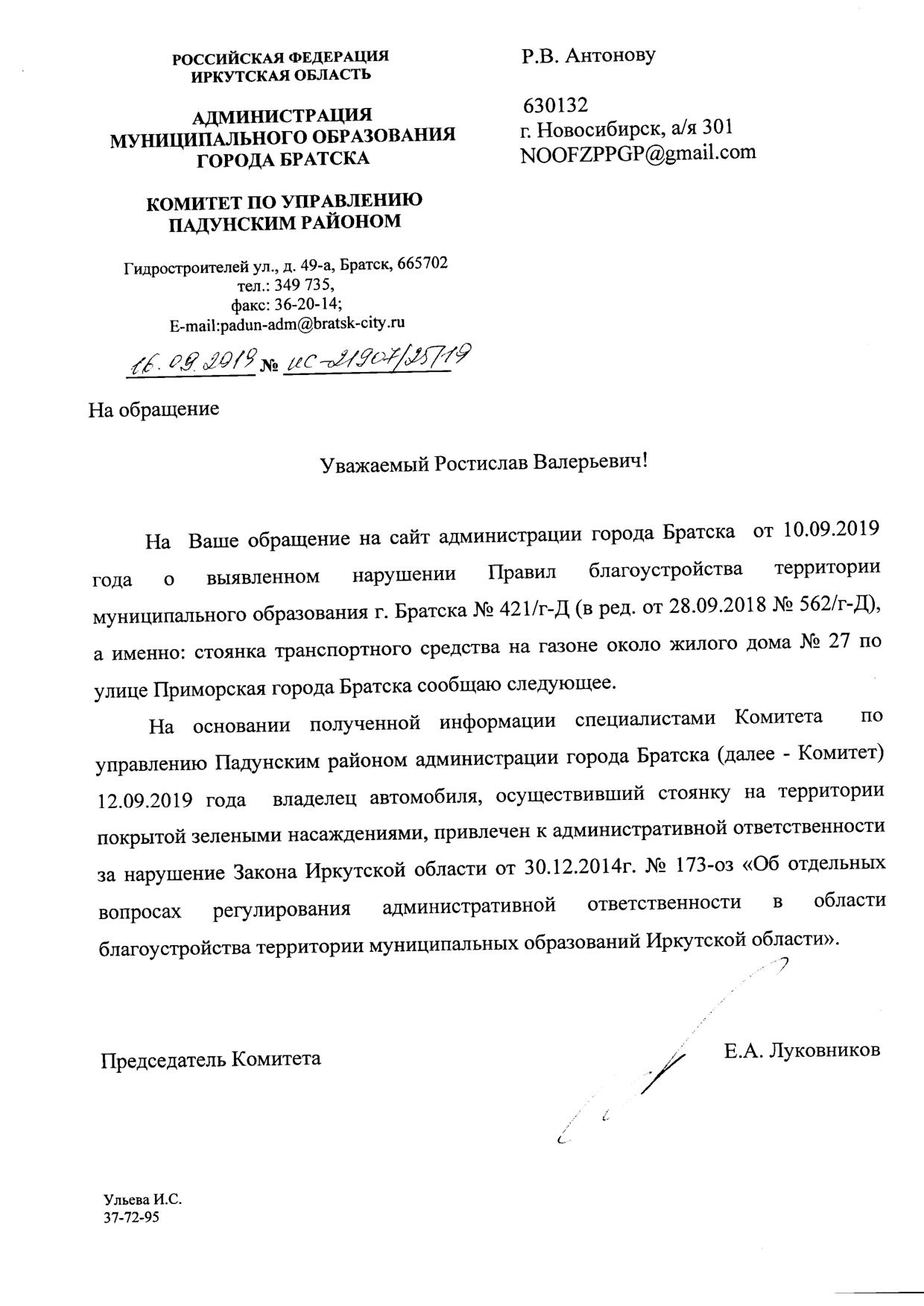 Номер жалобы:59868 Тип жалобы:Прочее Название объекта: Регион:Иркутская область Город:Братск Адрес:Приморская улица, 27 Описание жалобы:ПДД Парковка автомобиля на детской площадке Статус: