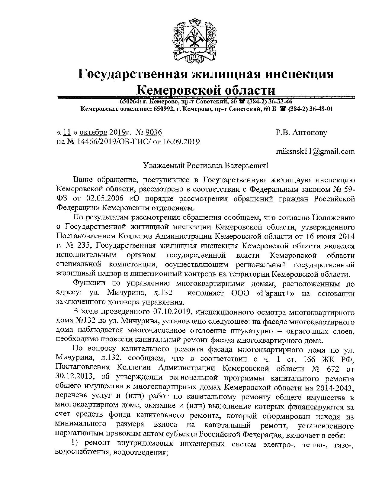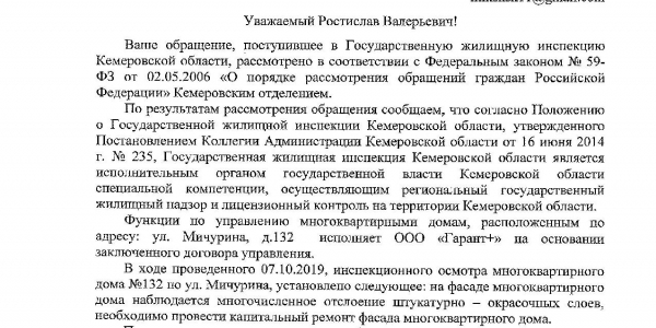Номер жалобы:59754 Тип жалобы:Прочее Название объекта: Регион:Кемеровская область Город:Кемерово Адрес:улица Мичурина, 13 Описание жалобы:ГЖИ Разрушения отделки стены с торца здания Статус: