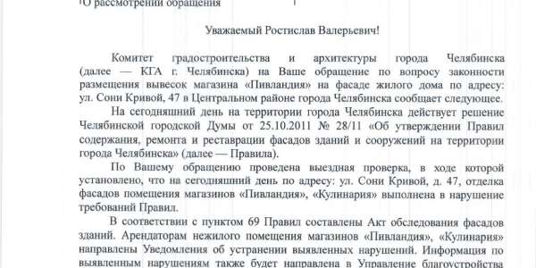 Номер жалобы:59883 Тип жалобы:Прочее Название объекта: Регион:Кемеровская область Город:Кемерово Адрес:Кемерово, Советский проспект, 63А Описание жалобы:Адм Статус: