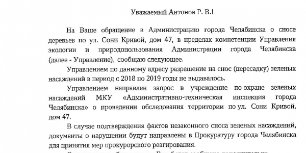 Номер жалобы:59874 Тип жалобы:Прочее Название объекта: Регион:Челябинская область Город:Челябинск Адрес:улица Сони Кривой, 47 Описание жалобы:1837-3 1. Не знаю, когда исчезли молодые деревья (в июне 2019 их уже точно не было), но на газоне 5-7 пеньков. На их месте планируется что-то высаживать? (Первое фото – сейчас, второе фото – как было раньше).
