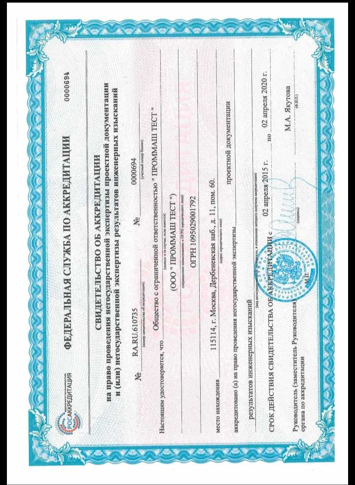 3. Лишить ООО "Проммаштест" аккредитации на проведение экспертиз. Статус: