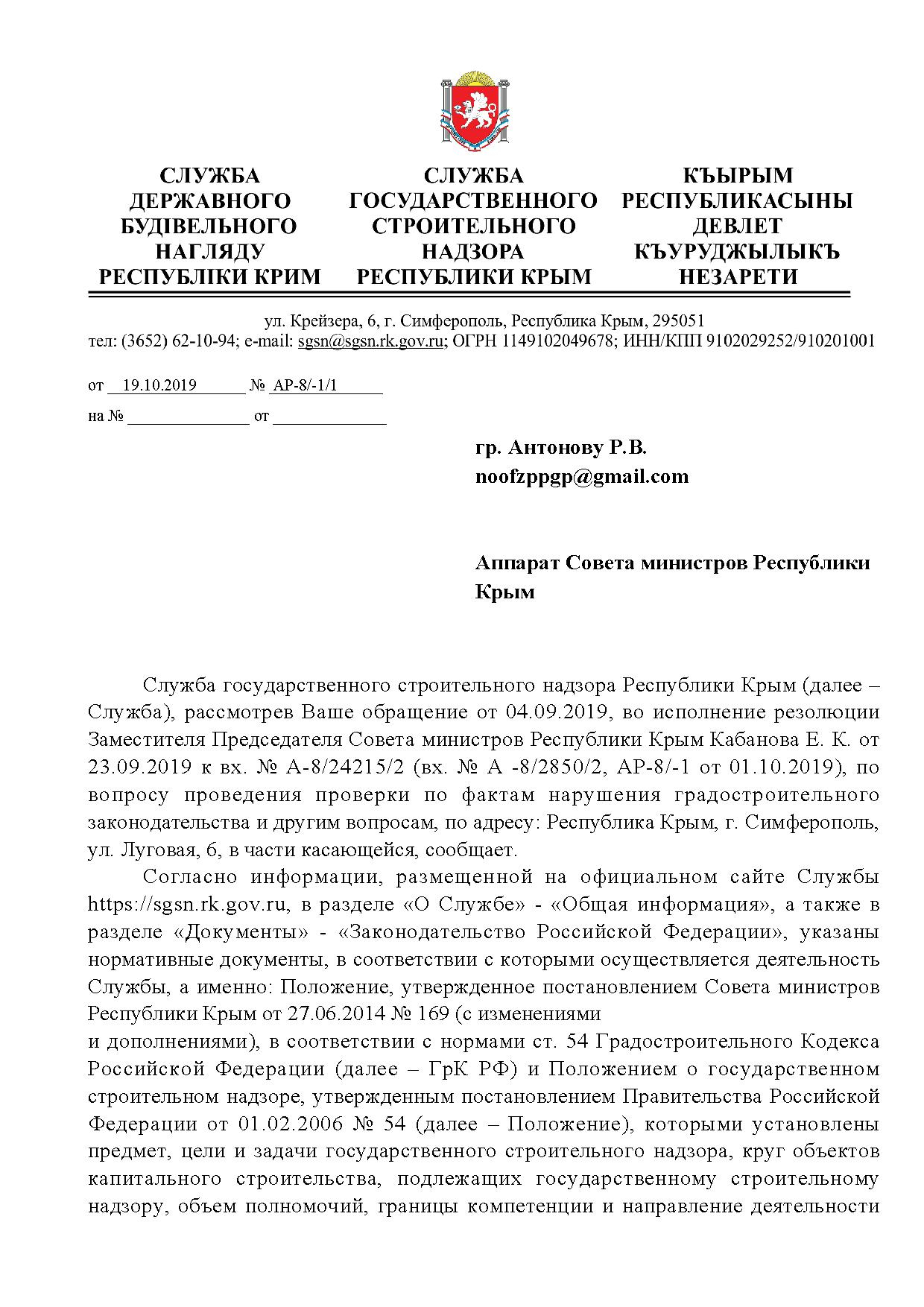Номер жалобы:59689 Тип жалобы:Прочее Название объекта: Регион:Республика Крым Город:Симферополь Адрес:Луговая улица, 6Т Описание жалобы:Федеральная служба по аккредитации. Ростехнадзор.