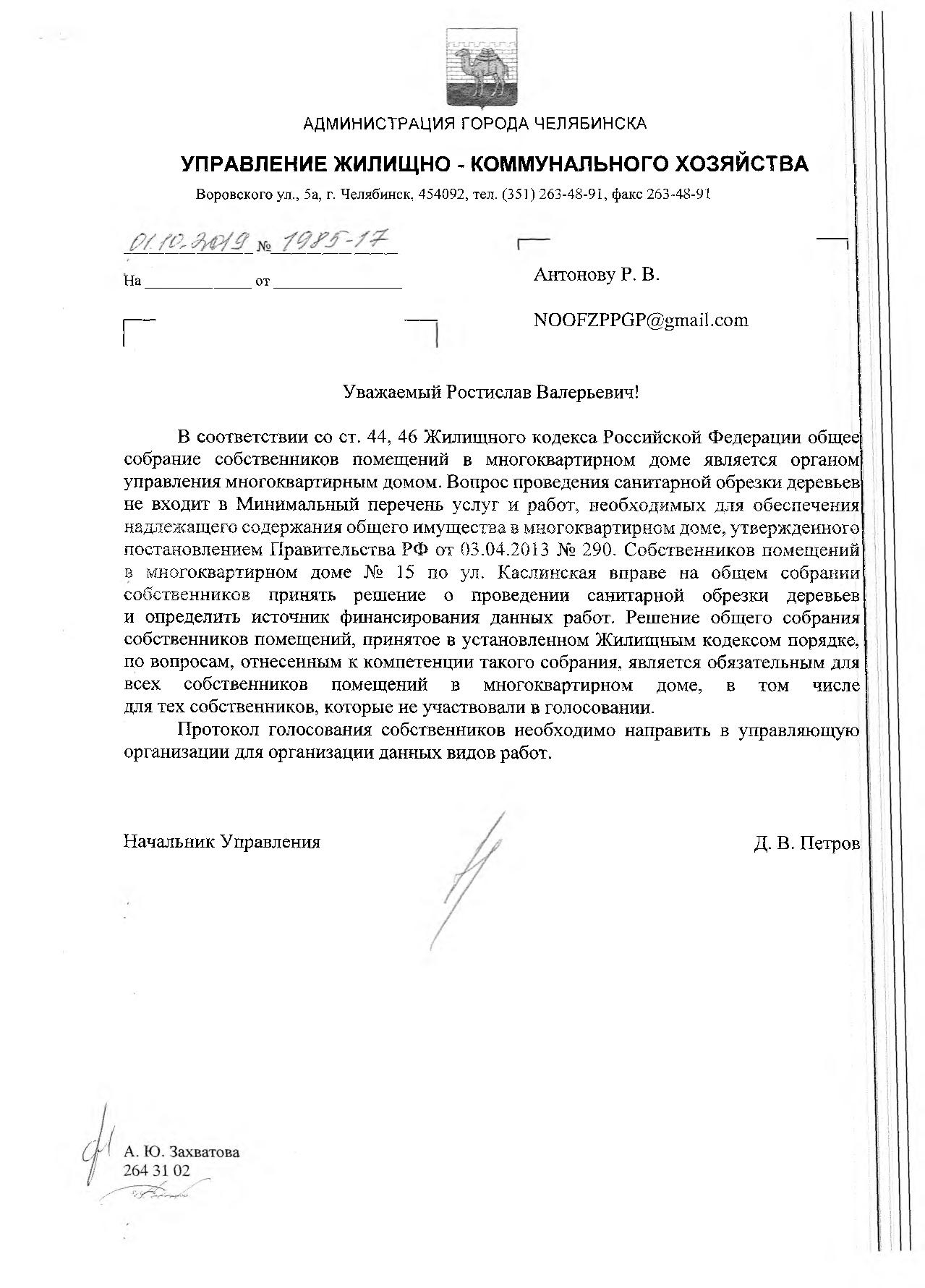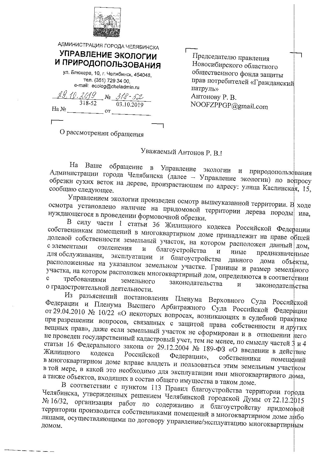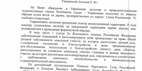 Номер жалобы:59497 Тип жалобы:Прочее Название объекта: Регион:Челябинская область Город:Челябинск Адрес:Каслинская улица, 15 Описание жалобы:На дереве большое количество сухих веток, которые могут упасть при сильном ветре. По весне Дез приезжали на спил, но на это дерево не хватило сил или терпения. Статус: