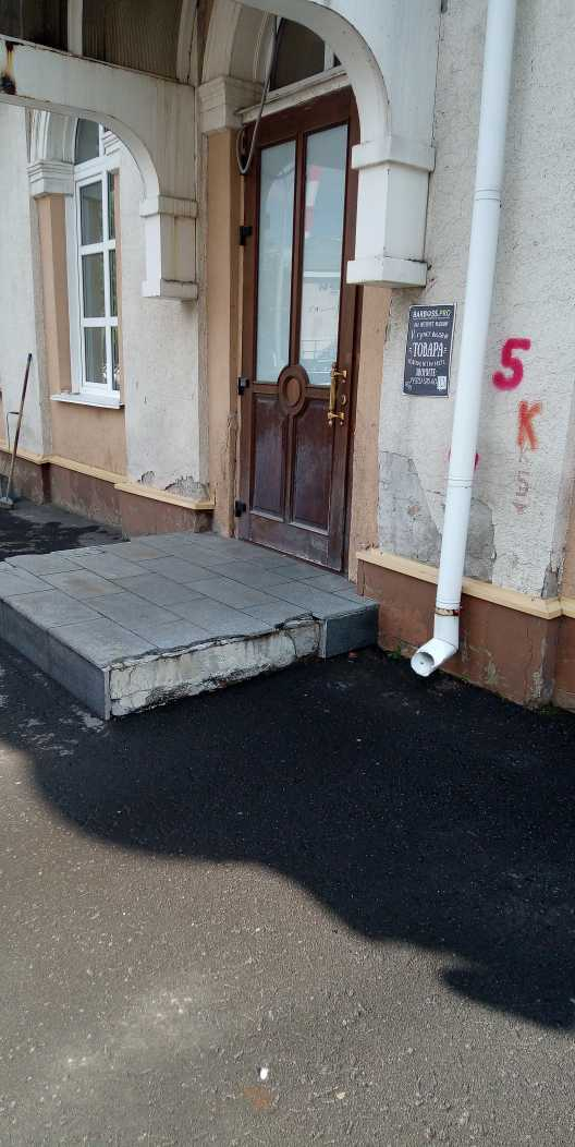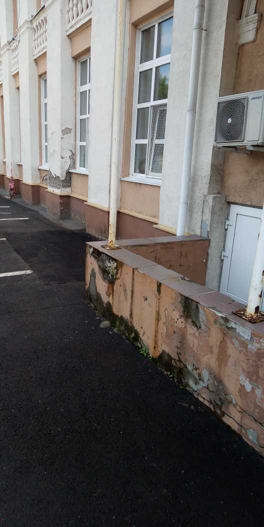 Номер жалобы:59460 Тип жалобы:Прочее Название объекта: Регион:Кемеровская область Город:Кемерово Адрес:Кемерово, Советский проспект, 26 Описание жалобы:АДМ Разрушения отделки нижней части здания. Разрушения крыльца, парапета на спуске в полуподвальное помещение. Разрушения отделки стены в виде колонны Статус: