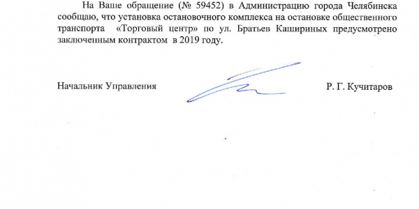 Номер жалобы:59452 Тип жалобы:Прочее Название объекта:Администрация г.Челябинска Регион:Челябинская область Город:Челябинск Адрес:Каслинская улица, 64 Описание жалобы:Остановка Торговый центр (ул.Братьев Кашириных, в сторону С/З, через дорогу от дома 64 по улице Каслинская).