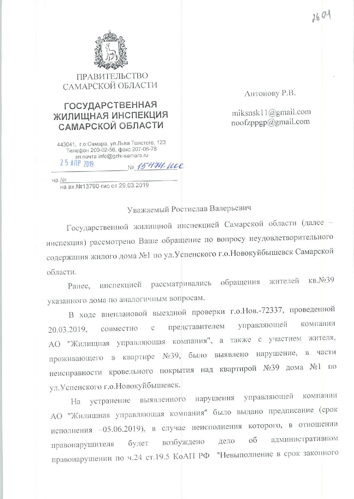 Номер жалобы:51324 Тип жалобы:Иные проблемы ЖКХ Название объекта:УК ЖУК Регион:Самарская область Город:Новокуйбышевск Адрес:Успенского 1-39 Описание жалобы:С 14.02.19 течёт вода с потолка в нашей квартире. На заявление в УК ЖУК - пришёл специалист, составил акт. Больше никаких действий со стороны УК не было. Ещё писали заявления, звонили- реакции ноль. Вода течёт с потолка и по стене внешней и на кухне и в двух комнатах. Вчера вода пошла к соседям , которые живут под нами ... боимся обрушения потолка ( в подъезде такое было).