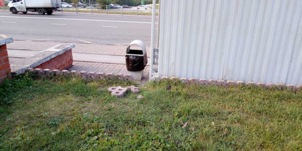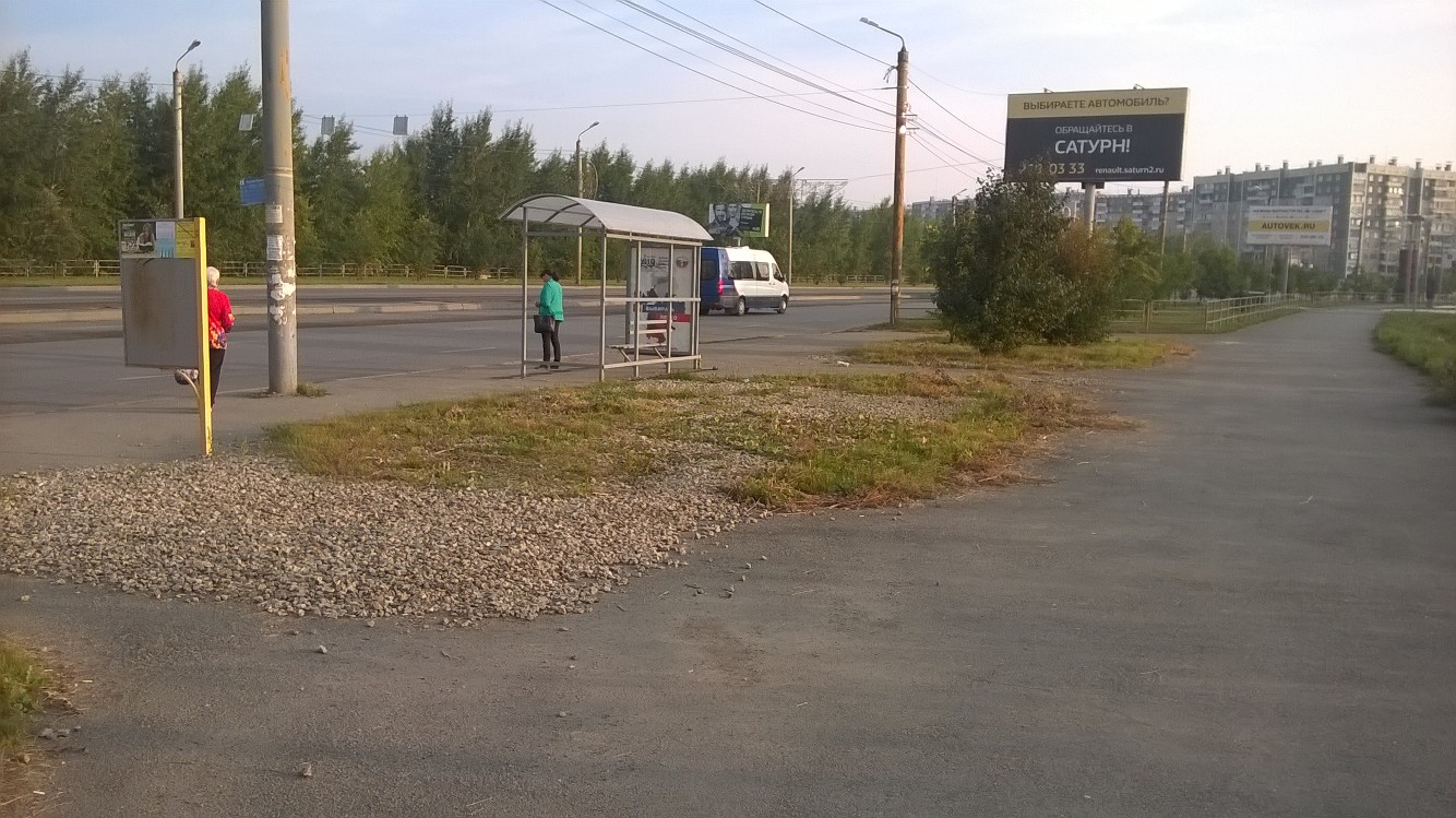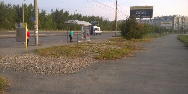 На прилегающей территории островки щебенки (когда то здесь планировался торговый павильон). Щебенка разбросана по территории остановки. Там самое место газонам, да хоть если была бы убрана щебенка и засыпан грунт, то на следующий год будет приятный и эстетический внешний вид. Жители города не заслужили такого к себе отношения.