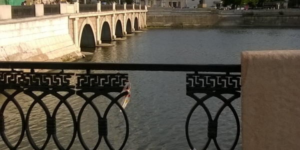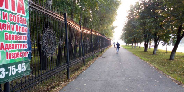 В районе примыкания сквера (где установлен памятник П.А.Столыпину) к мосту на ул.Кирова отсутствует одна секция ограждения (забора).