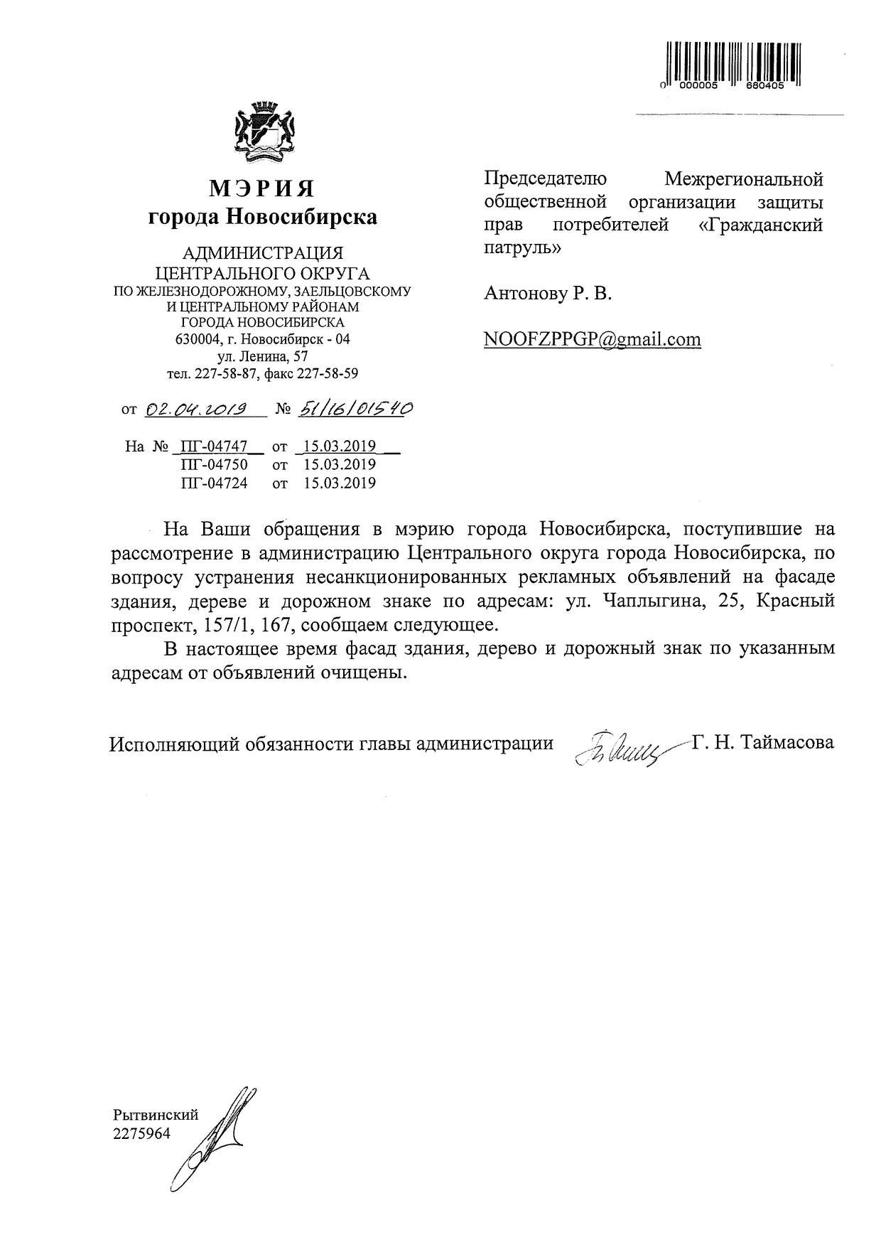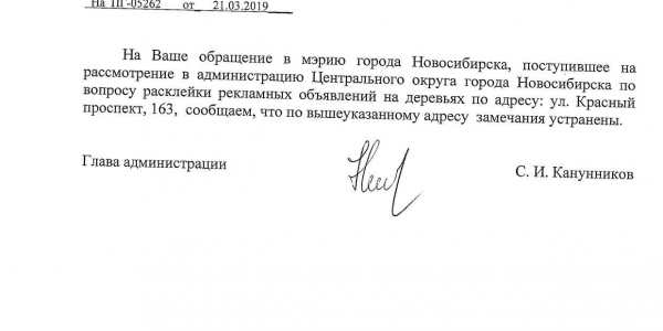 Номер жалобы:51263 Тип жалобы:Иные проблемы ЖКХ Название объекта: Регион:Новосибирская область Город:Новосибирск Адрес:Красный проспект, 167 Описание жалобы:Объявления в неположенном месте Статус: