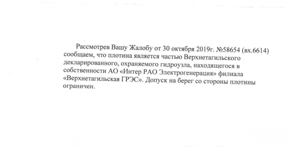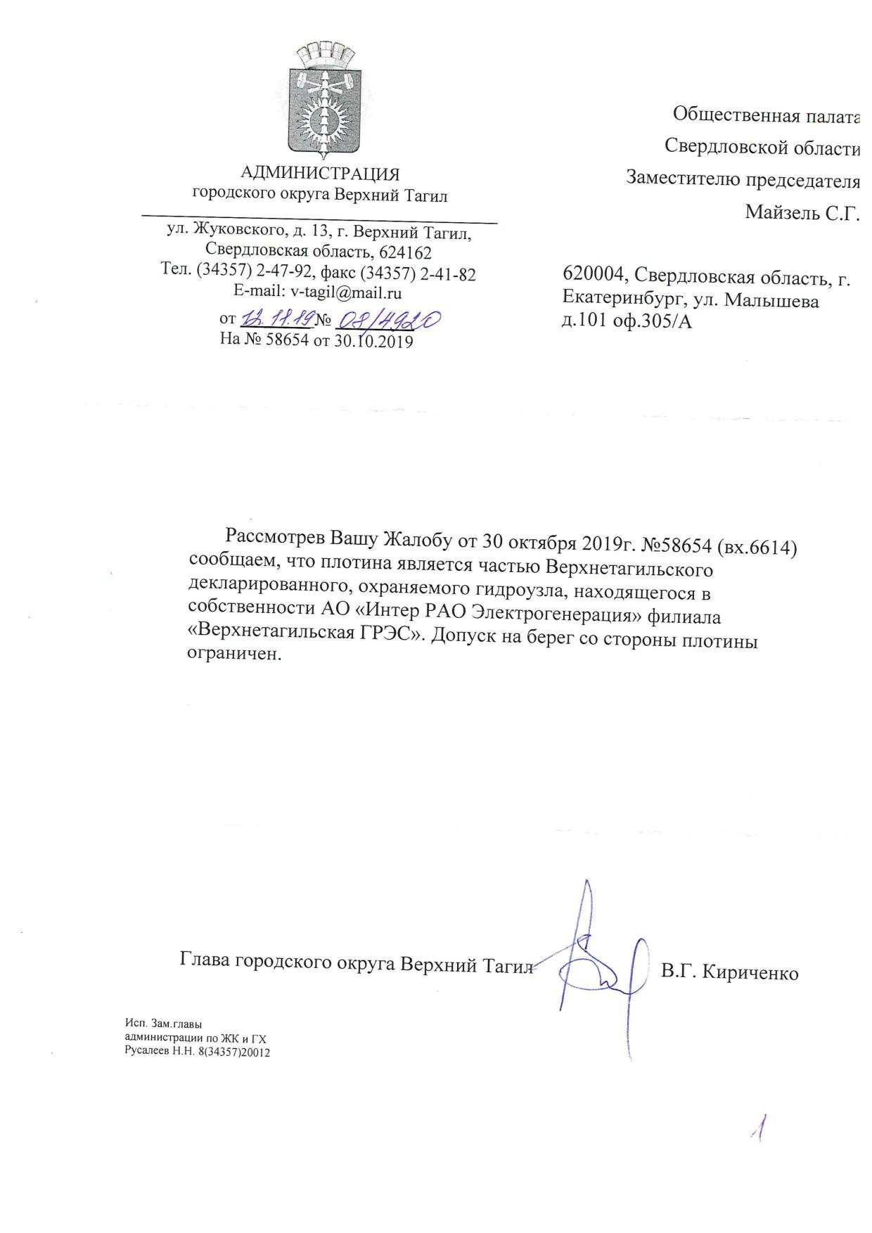 Номер жалобы:58654 Тип жалобы:Прочее Название объекта:мэрия Верхнего Тагила Регион:Свердловская область Город:Верхний Тагил Адрес:улица Ленина Описание жалобы:В нарушение ст. 6 ВК РФ ограничен доступ к берегу Верхне-Тагильского пруда с плотины. Статус: