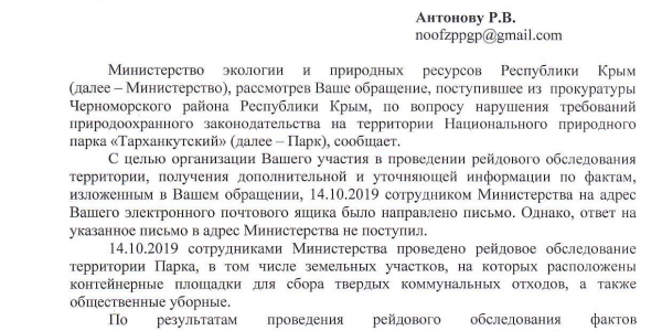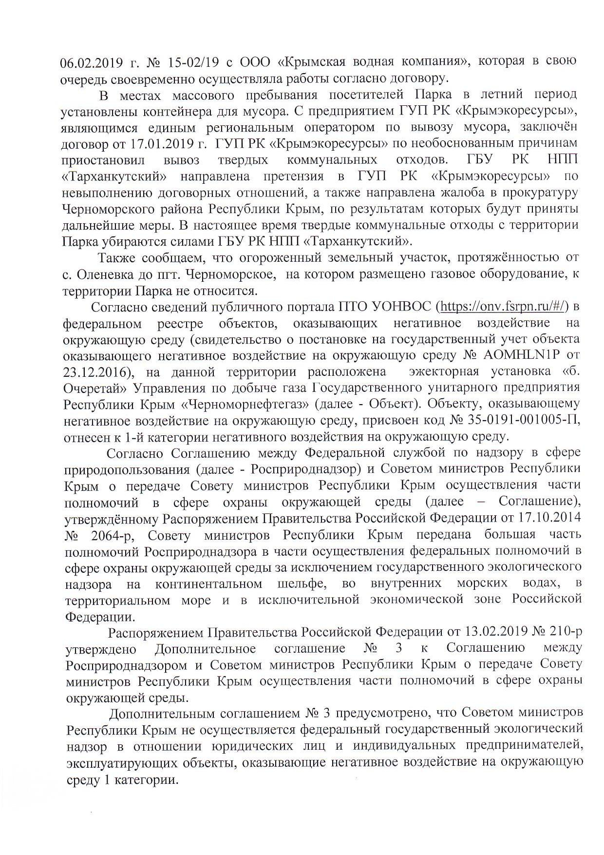 Номер жалобы:58664 Тип жалобы:Прочее Название объекта: Регион:Республика Крым Адрес:Тарханкутский национальный природный парк Описание жалобы:Тарханкутский национальный природный заповедник.