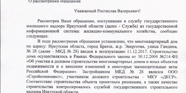 Номер жалобы:58603 Тип жалобы:Прочее Название объекта: Регион:Иркутская область Город:Братск Адрес:улица Гиндина, 28 Описание жалобы:Потоп в квартире после дождей Статус: