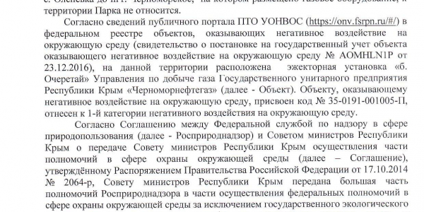 Номер жалобы:58665 Тип жалобы:Прочее Название объекта: Регион:Республика Крым Адрес:Тарханкутский национальный природный парк Описание жалобы:На территории парка на участке от с. Оленевка до п. Черноморское доступ к берегу моря ограничен для граждан, расположен забор вокруг газового оборудования. прошу убрать ограждения, открыть пляж в соответствии с