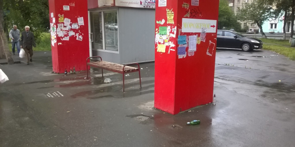 На остановочном комплексе отсутствует урна (мусороприемник).