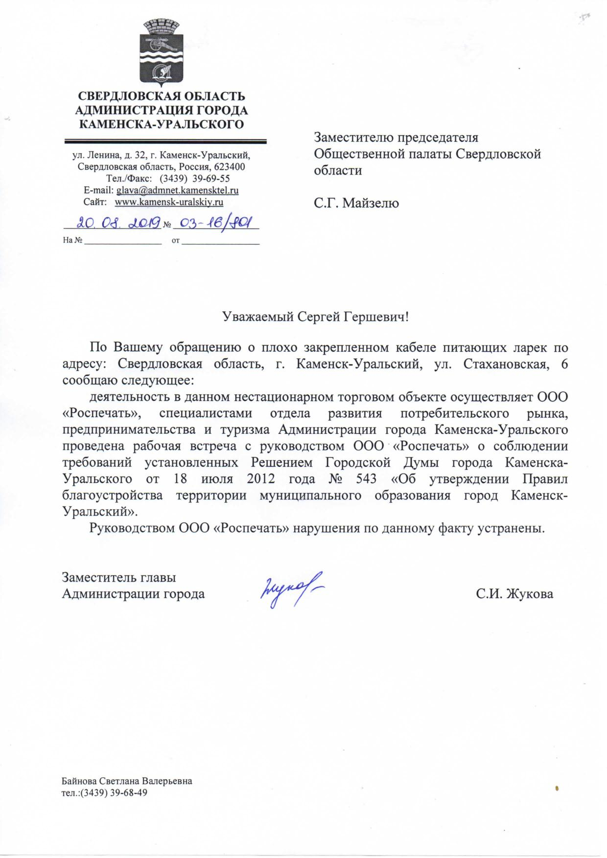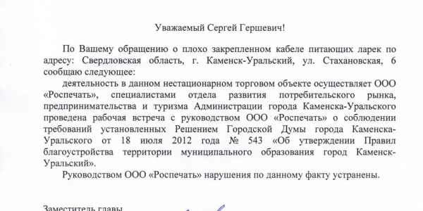 Номер жалобы:57956 Тип жалобы:Прочее Название объекта: Регион:Свердловская область Город:Каменск-Уральский Адрес:Стахановская улица, 6 Описание жалобы:Плохо закреплён кабель питающий ларёк Статус: