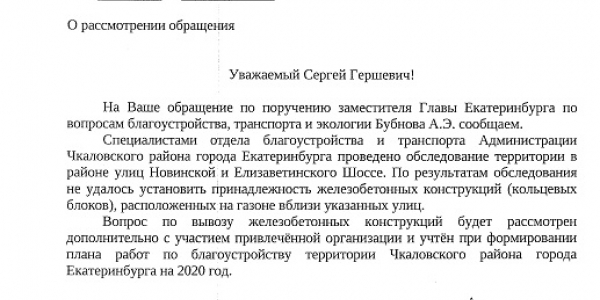 Номер жалобы:57944 Тип жалобы:Прочее Название объекта:мэрия Регион:Свердловская область Город:Екатеринбург Адрес:(56.766931, 60.627667) Описание жалобы:Бесхозные железобетонные изделия в кустах с юго-западной стороны от перекрёстка Елизаветинского шоссе и улицы Новинской. Статус: