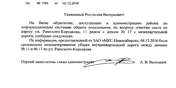 Номер жалобы:11501 Тип жалобы:Качество уборки снега во дворе Название объекта:Управляющая Компания Город:Новосибирск Адрес:Новосибирск, улица Римского-Корсакова, 11 Описание жалобы:Рядом с домом 17,снег на проезжей части Статус: