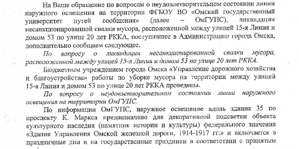 Номер жалобы:57224 Тип жалобы:Прочее Название объекта: Регион:Омская область Город:Омск Адрес:улица 20 лет РККА, 95 Описание жалобы:Напротив дома по адресу 11я Линия 181, под деревьями возле гаражей расположена свалка всевозможного мусора. Дорожники окашивают обочину, но мусор никто не убирает. Люди ходят по тротуару мимо этой кучки-вонючки Статус: