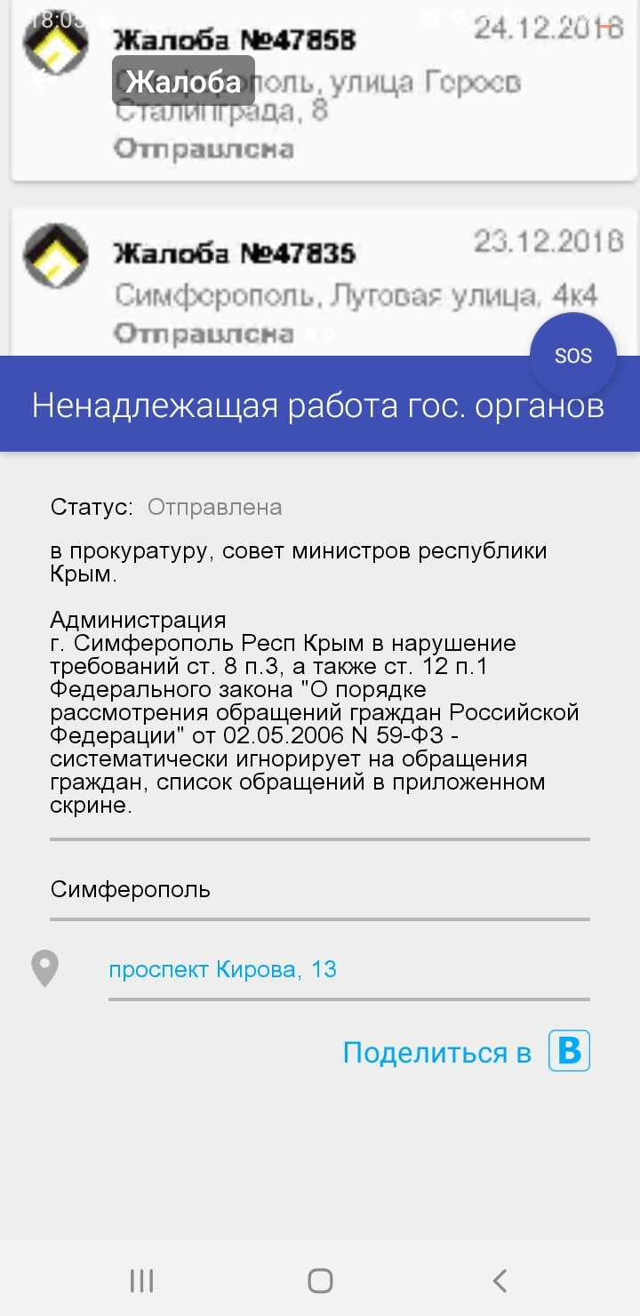 Номер жалобы:57109 Тип жалобы:Прочее Название объекта: Регион:Республика Крым Город:Симферополь Адрес:проспект Кирова, 13 Описание жалобы:Главе РК С.В. Аксенову. гл. г. Симферополь Н.Ф. Маленко.