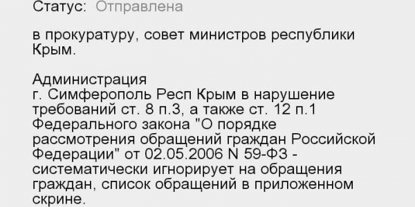 Прокуратура Крыма не отвечает на обращения граждан. Статус: