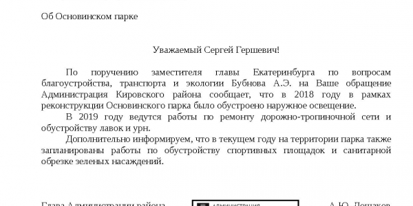 Номер жалобы:57112 Тип жалобы:Прочее Название объекта: Регион:Свердловская область Город:Екатеринбург Адрес:Основинский парк Описание жалобы:Просьба провести реконструкцию основинского парка: заменить покрытие дорожек (после дождя там ужасная грязь), поставить больше урн и лавочек