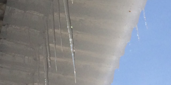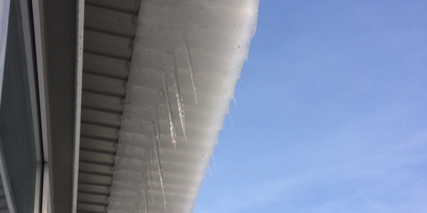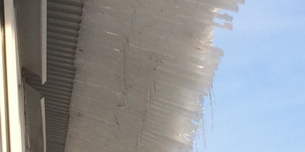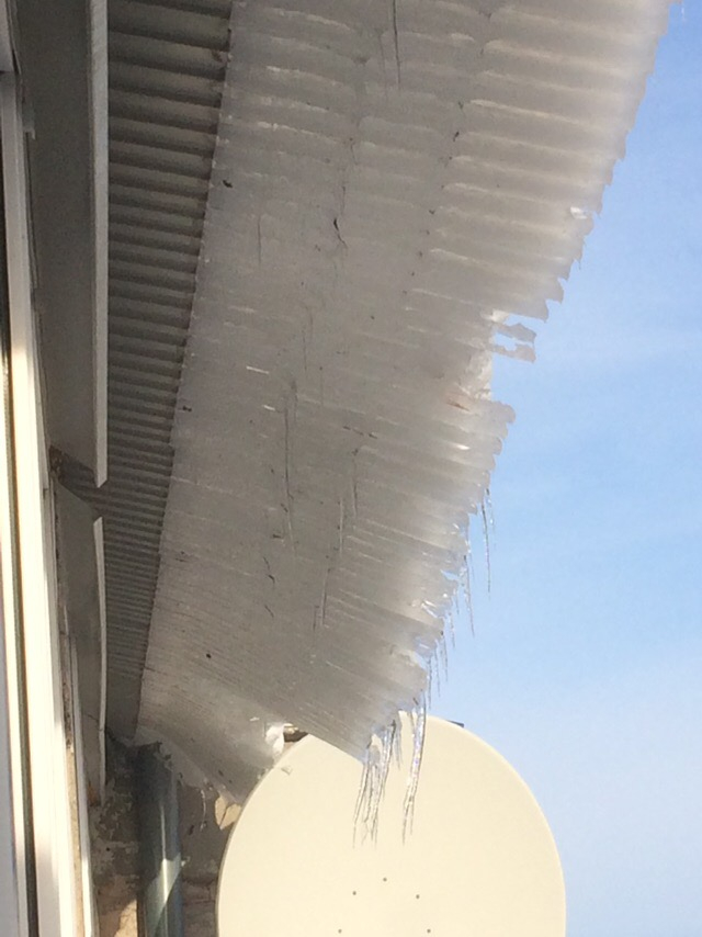Ледяная масса неубранного снега с крыши. Она уже начинает сползать и может кого то убить Статус: