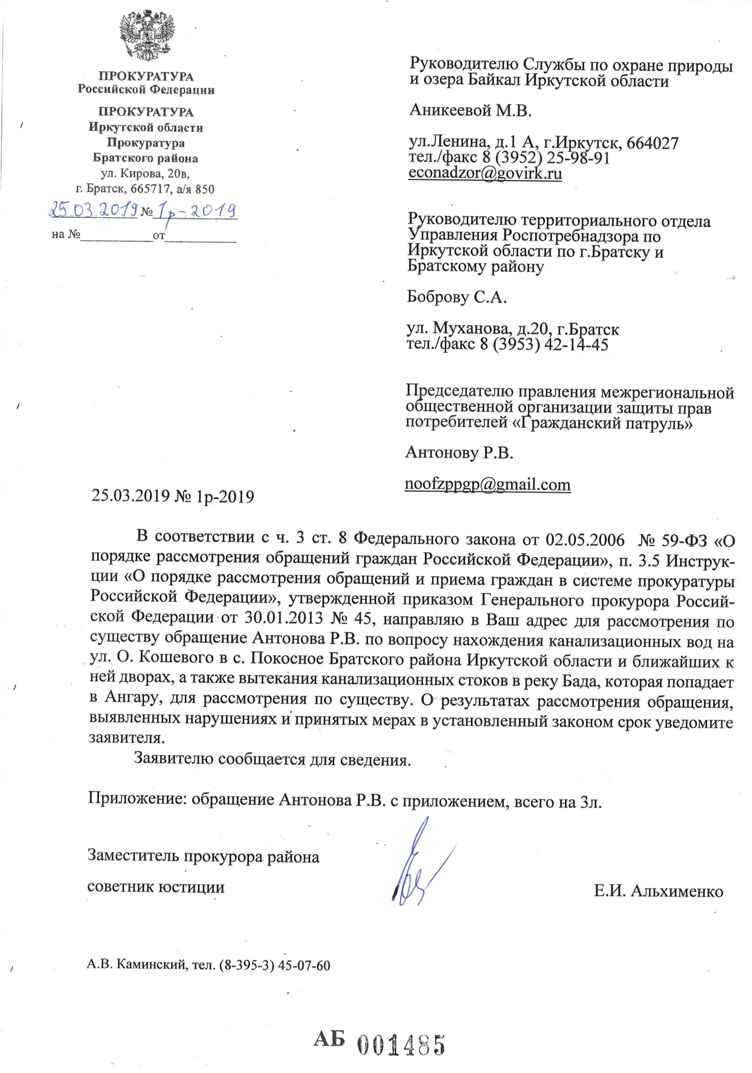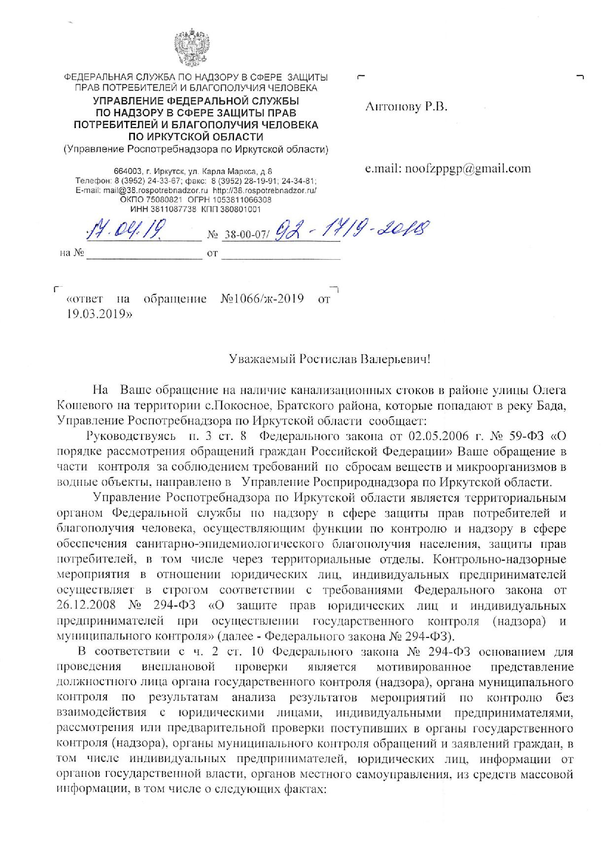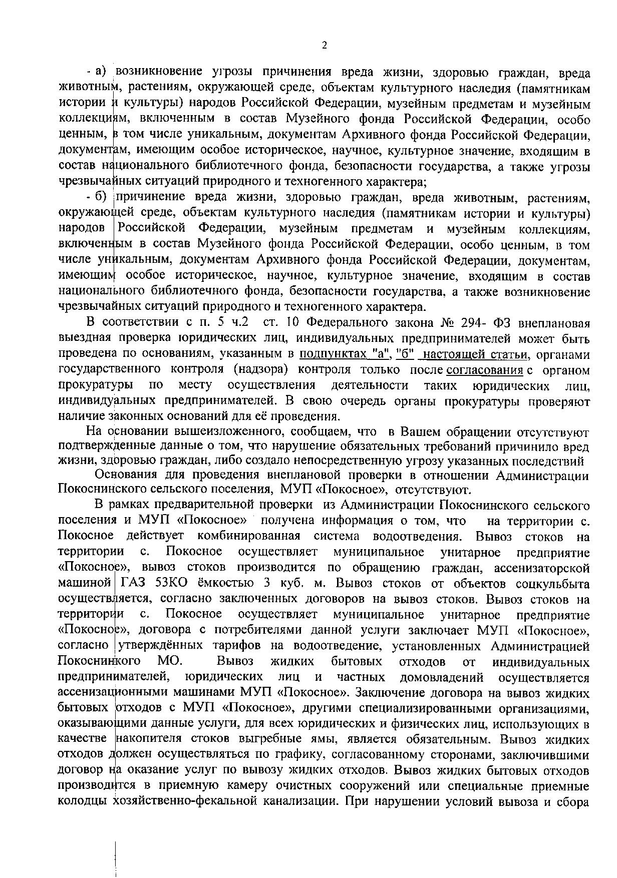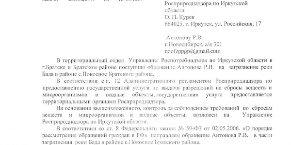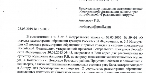 Номер жалобы:50498 Тип жалобы:Иные проблемы ЖКХ Название объекта:Жкх и глава администрации Регион:Иркутская область Город:село Покосное Адрес:ул. О. Кошевого Описание жалобы:Здравствуйте нужна помощь как достучаться до кого нибудь по центральной улице Ол.Кошевого по улице бежит канализация все во дворы местным жителям и реку Бада которая попадает в Ангару может к зеленым обратиться по тому что глава администрации не может справиться помогите пожалуйста Статус: