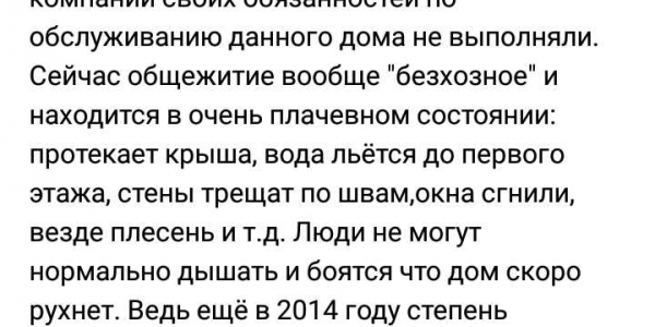Номер жалобы:50455 Тип жалобы:Иные проблемы ЖКХ Название объекта: Регион:Самарская область Город:Самара Адрес:Пугачёвская улица, 61 Описание жалобы:Здравствуйте!к вам обращаюсь с большой надеждой на помощь!В нашем доме страшно ходить и жить!ремонта не было более 20 лет,многократно писали жалобу в компанию жкх Жилуниверсал,но результата никакого!на некоторых этажах 9- и этажного дома соседи сообща своими силами и финансами делали ремонт своего крыла!К концу 2018 года начался ремонт,но наша радость продлилась не долго, как ремонт начался так и закончился( поменяли перила,поменяли почтовые ящики,и покрасили часть стен,а когда же остальное - этот вопрос останется открытым ещё на лет 20?)В нашем доме много детей и все мы ходим гулять в соседние дворы благо,что они есть, наш Двор заброшен и в прямом смысле слово загажен,там производят только выгул собак(причем хозяева отпускают своих собак с поводков и были случаи нападения, неоднократно прибегали к помощи ово ) дела!помогите пожалуйста! Статус: