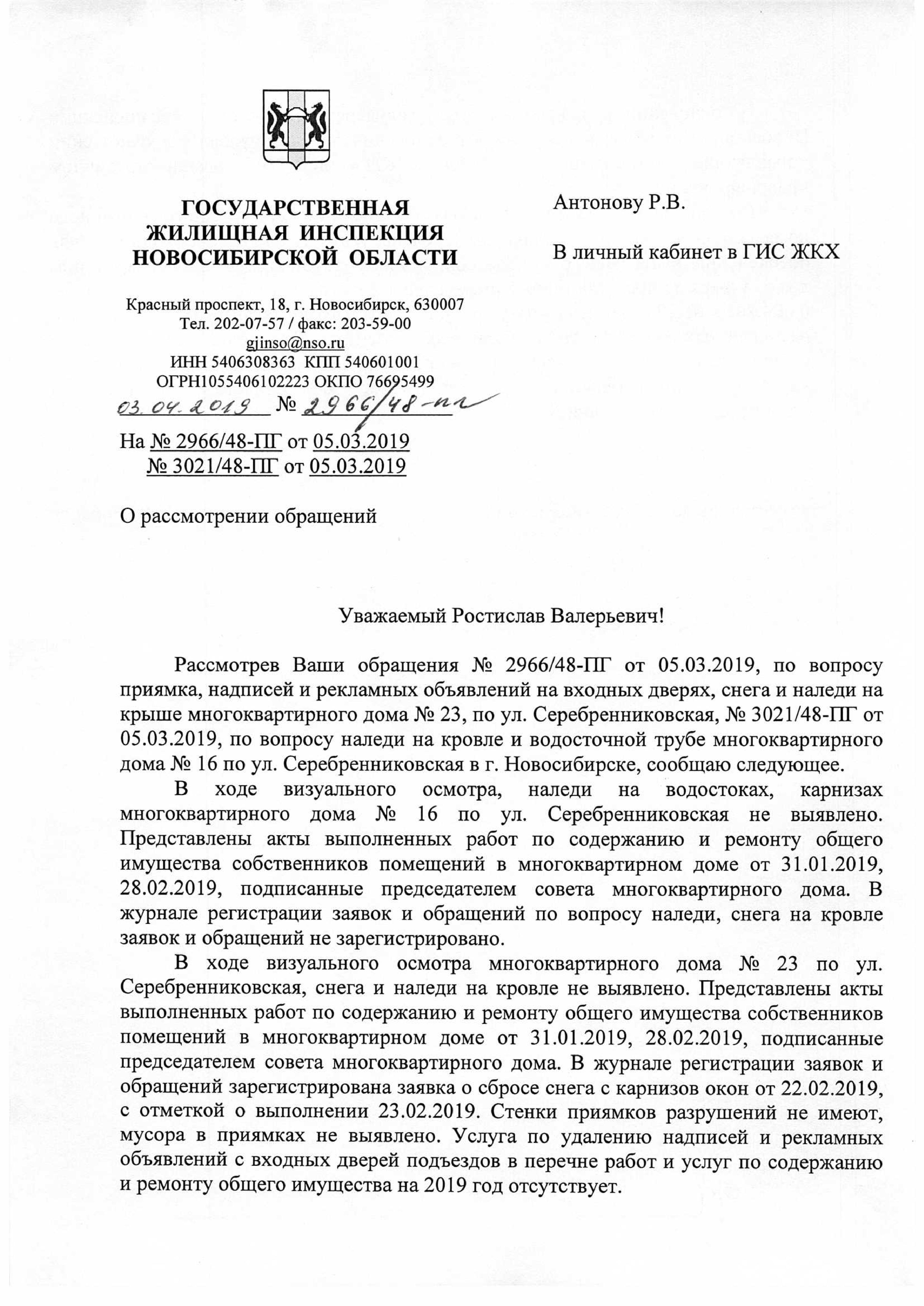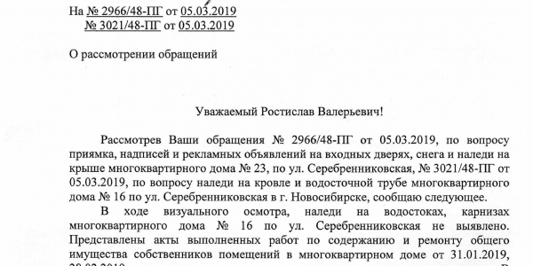Номер жалобы:50429 Тип жалобы:Иные проблемы ЖКХ Название объекта: Регион:Новосибирская область Город:Новосибирск Адрес:Серебренниковская улица, 23 Описание жалобы:Объявления в неположенном месте Статус: