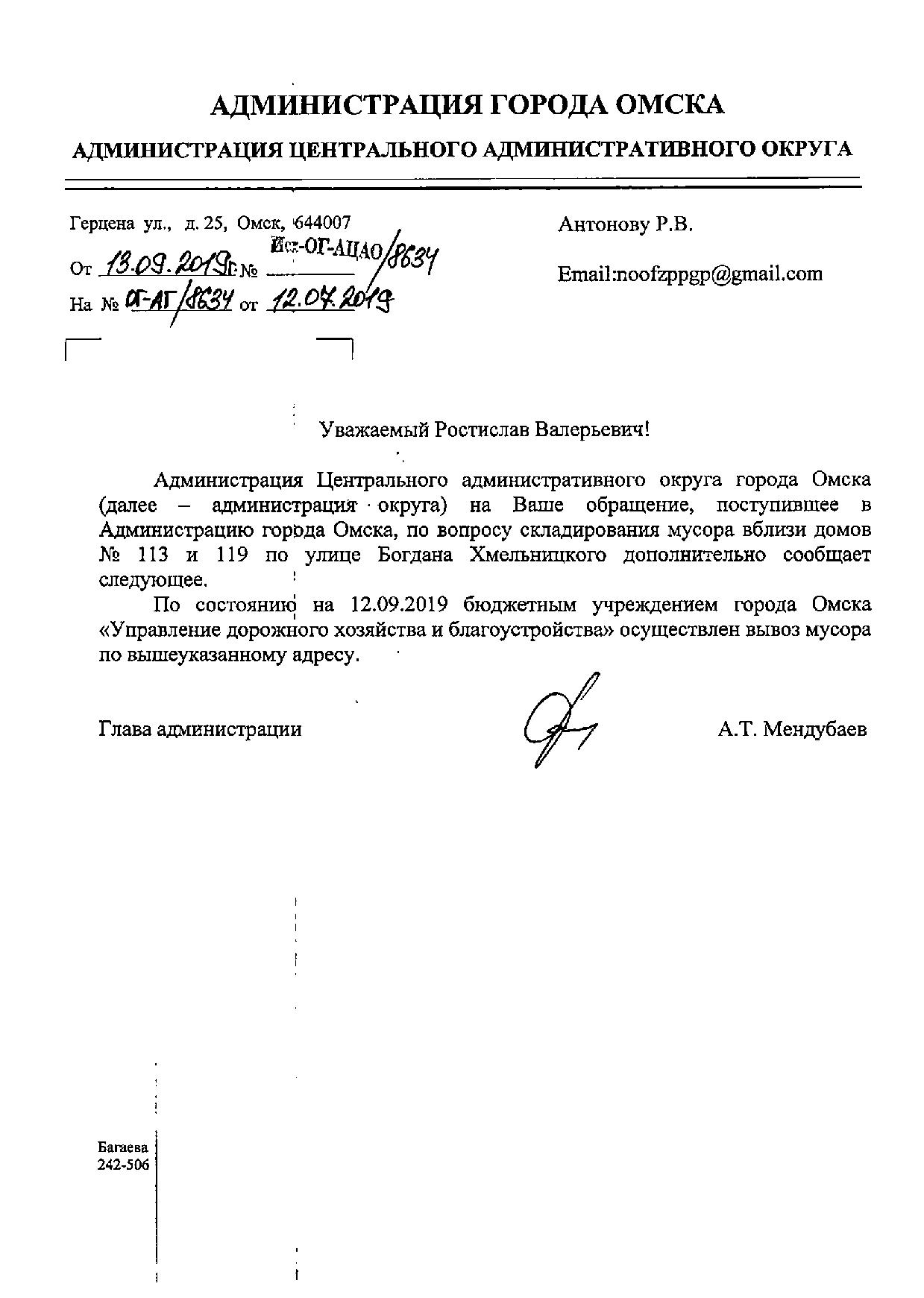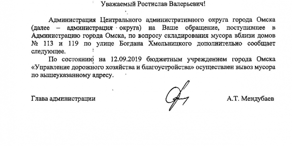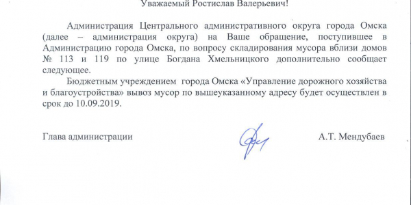 Номер жалобы:56981 Тип жалобы:Прочее Название объекта: Регион:Омская область Город:Омск Адрес:улица Богдана Хмельницкого, 113 Описание жалобы:Кучи мусора возле дома 113 и 119 Статус: