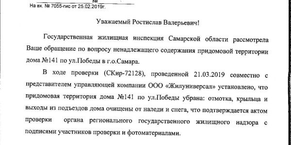 Номер жалобы:49614 Тип жалобы:Качество уборки снега на тротуарах Название объекта: Регион:Самарская область Город:Самара Адрес:ул Победы, 141 Описание жалобы:Дворник не чистит наше крыльцо и территорию около крыльца ото льда.бездействие Управляющей компании Жилуниверсал.Улица Победы д.141.6 подъезд Юлия Иванова самарская вк из ленты Статус: