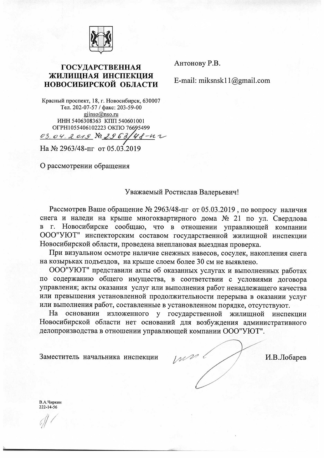 Номер жалобы:50363 Тип жалобы:Иные проблемы ЖКХ Название объекта: Регион:Новосибирская область Город:Новосибирск Адрес:улица Свердлова, 21 Описание жалобы:ООО "УЮТ"