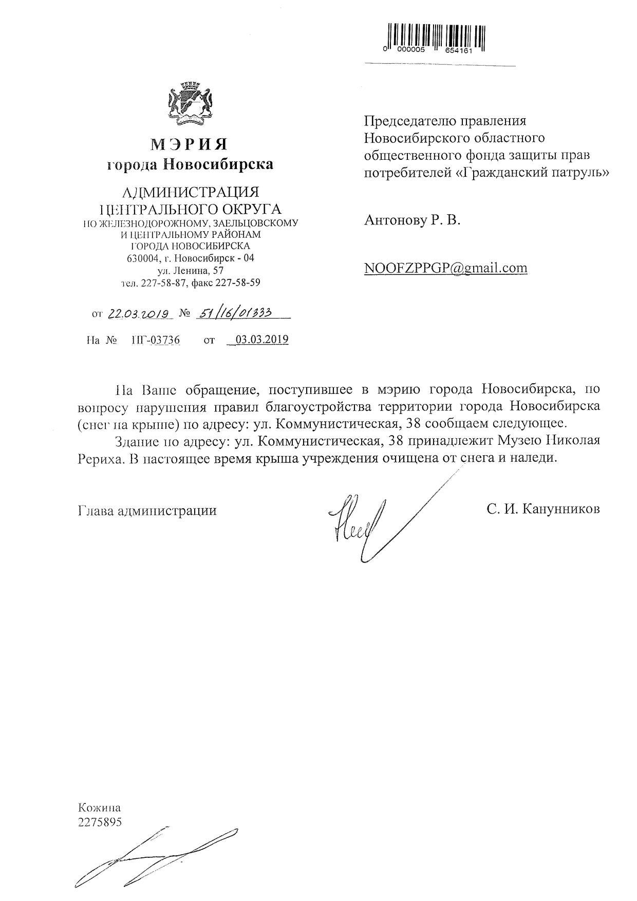 Номер жалобы:50351 Тип жалобы:Иные проблемы ЖКХ Название объекта: Регион:Новосибирская область Город:Новосибирск Адрес:Коммунистическая улица, 38 Описание жалобы:Снег на крыше дома Статус: