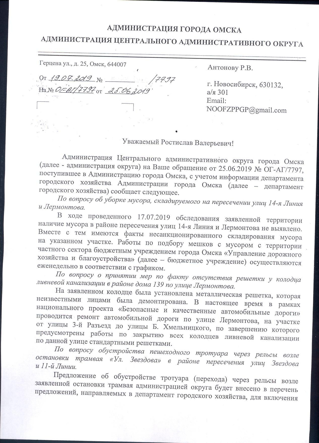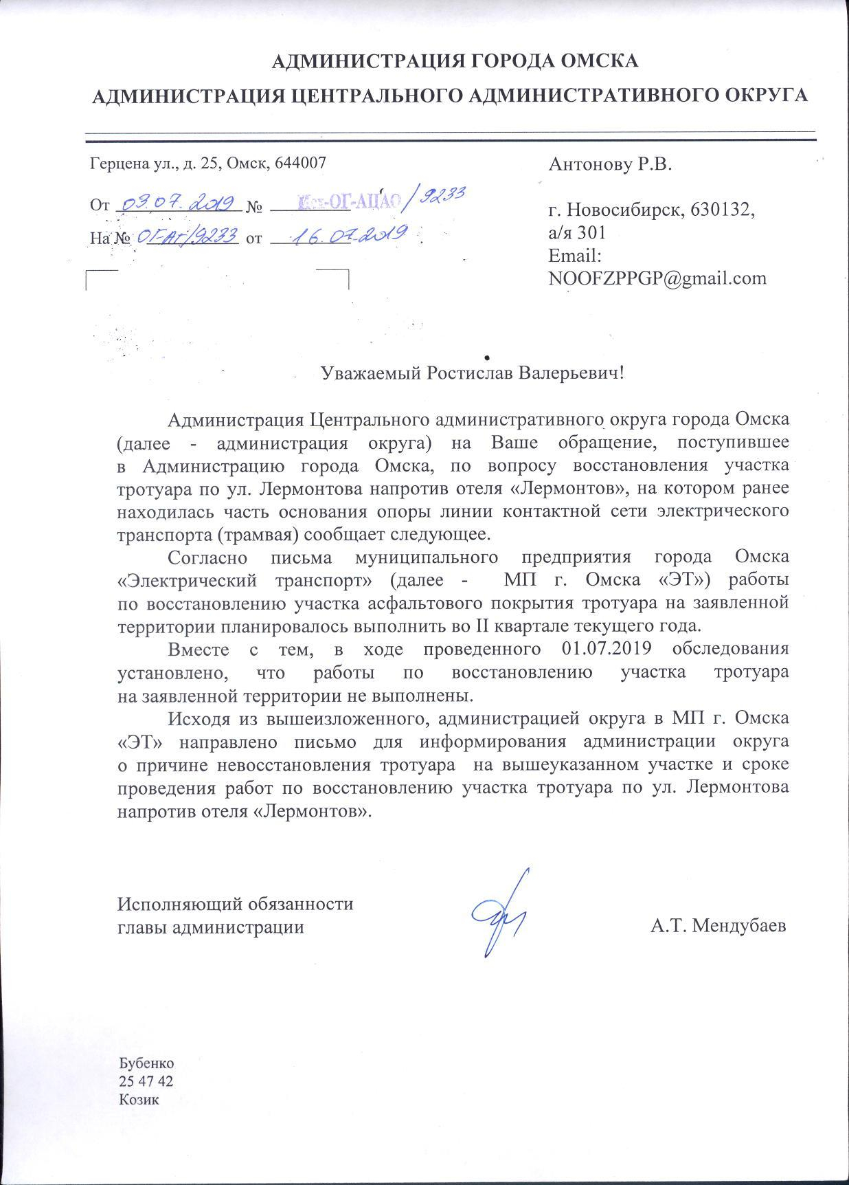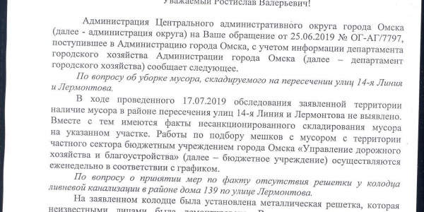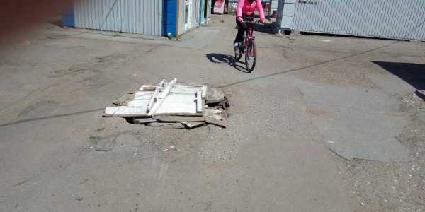 Номер жалобы:56539 Тип жалобы:Прочее Название объекта: Регион:Омская область Город:Омск Адрес:улица Лермонтова, 132 Описание жалобы:Огромная дыра посередине тротуара, рядом с трамвайной остановкой и мини-рынком. Много лет накрыта деревянными кругами от катушек с проводами. Сверху лежит сломанный стол. Дыра увеличивается. Освещение здесь практически отсутствует. Но даже днем туда может случайно провалиться ногой кто угодно. В прокуратуру по факту длительного подвергания опасности жителей. Статус: