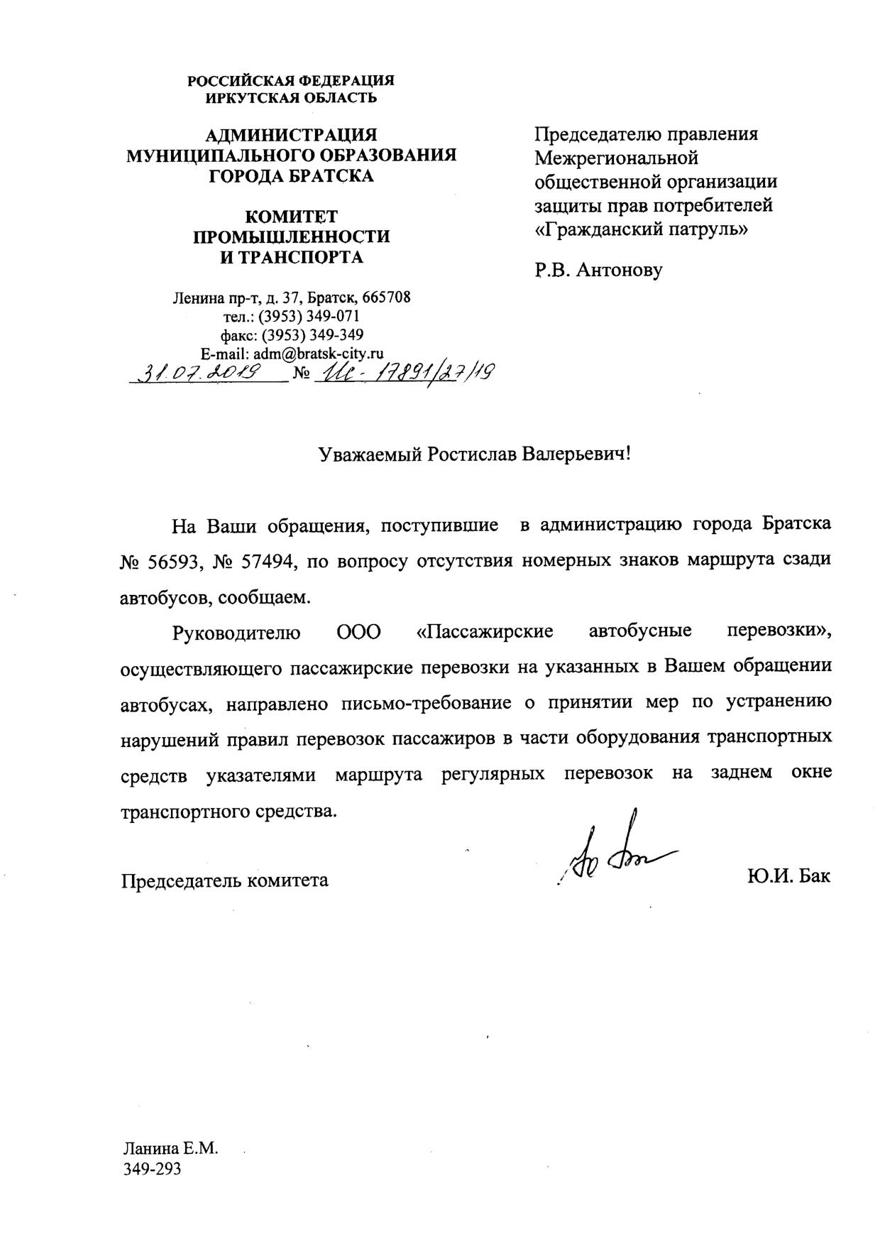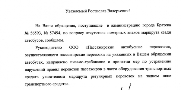 Номер жалобы:56593 Тип жалобы:Прочее Название объекта: Регион:Иркутская область Город:Братск Адрес:(56.147027, 101.61327) Описание жалобы:Сзади автобуса нет номерного знака маршрута Статус: