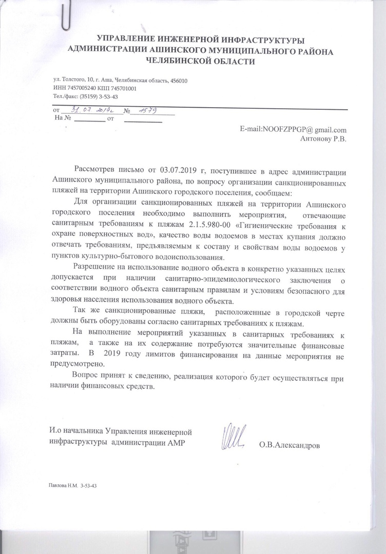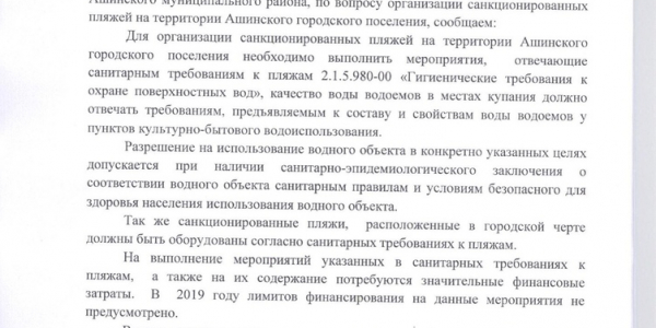 Прошу проработать вопрос о создании городских пляжей в Аше.