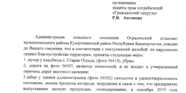 Номер жалобы:56506 Тип жалобы:Прочее Название объекта: Регион:Республика Башкортостан Город:село Старая Отрада Адрес:село Старая Отрада Описание жалобы:Сломан забор вокруг администрации Статус:
