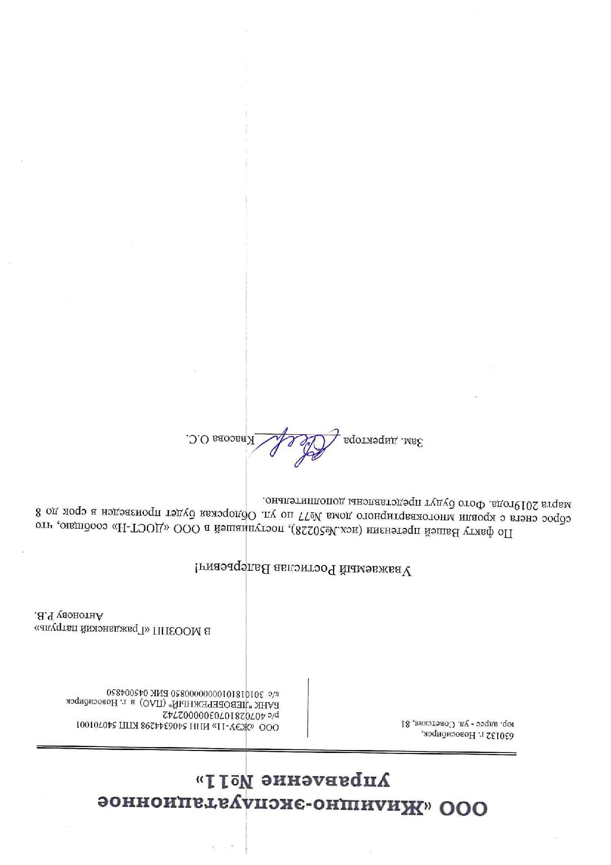 Номер жалобы:50226 Тип жалобы:Иные проблемы ЖКХ Название объекта: Регион:Новосибирская область Город:Новосибирск Адрес:Железнодорожная улица, 8 Описание жалобы:ООО УК "ЭКО ПЛЮС"