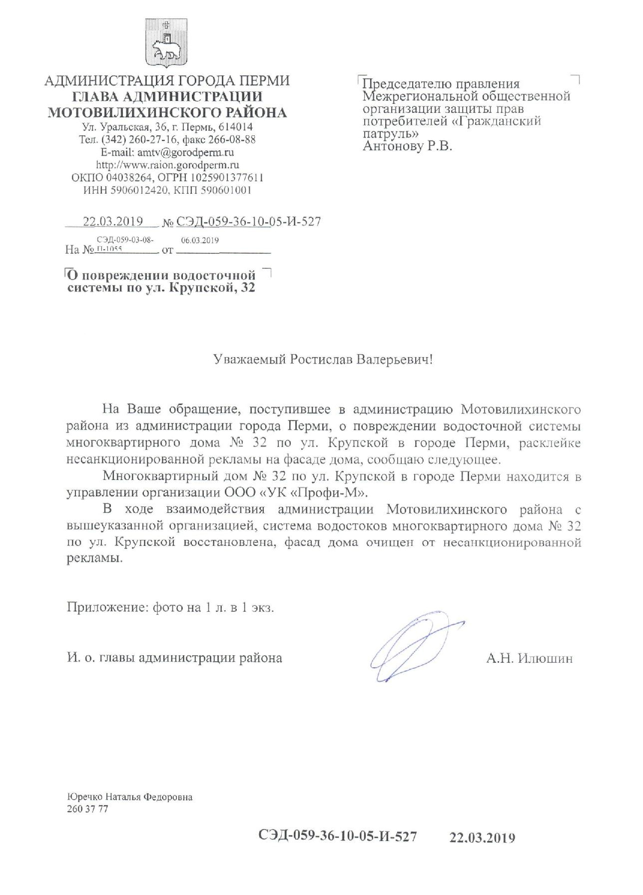 Номер жалобы:50277 Тип жалобы:Иные проблемы ЖКХ Название объекта: Регион:Пермский край Город:Пермь Адрес:улица Крупской, 32 Описание жалобы:повреждена водосточная труба, расклейка объявлений в неположенном месте Статус: