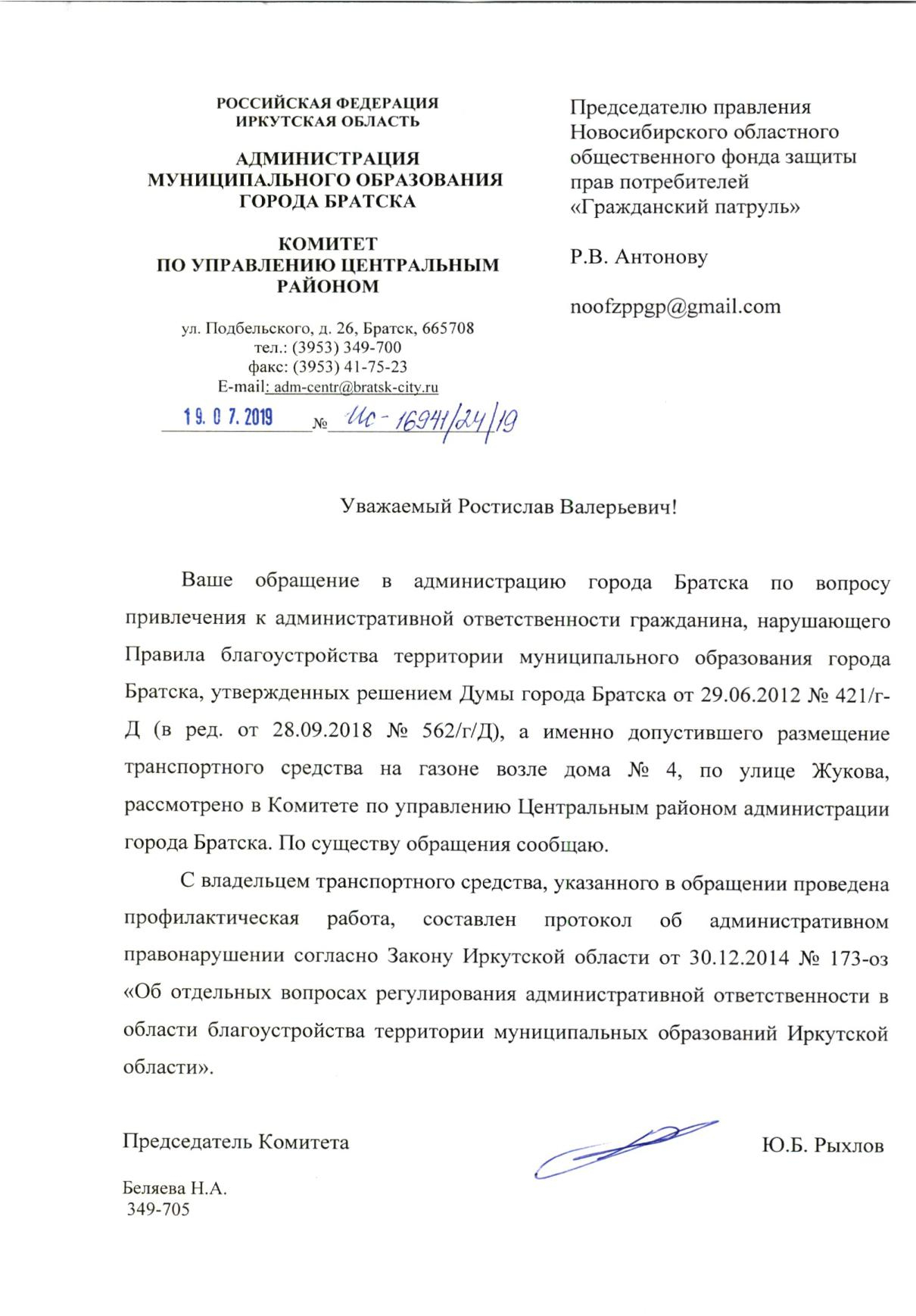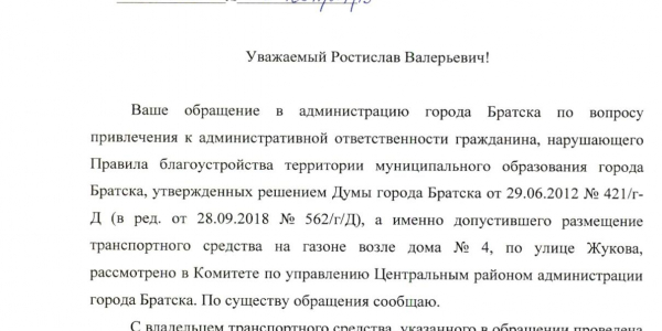 Номер жалобы:56385 Тип жалобы:Прочее Название объекта: Регион:Иркутская область Город:Братск Адрес:улица Маршала Жукова, 4 Описание жалобы:Стоянка на газонах Статус: