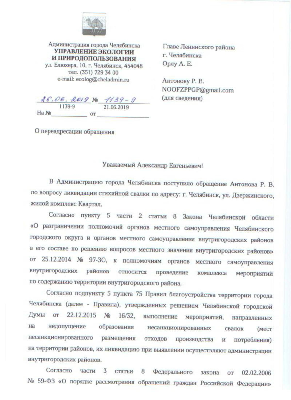 Номер жалобы:56401 Тип жалобы:Прочее Название объекта: Регион:Челябинская область Город:Челябинск Адрес:жилой комплекс Квартал на Дзержинского Описание жалобы:Строительный мусор! плюс Рядом с ним открыт канализационный ход. Находится между домами Дзержинского 22а и Якутская 9, где "мостик" Статус: