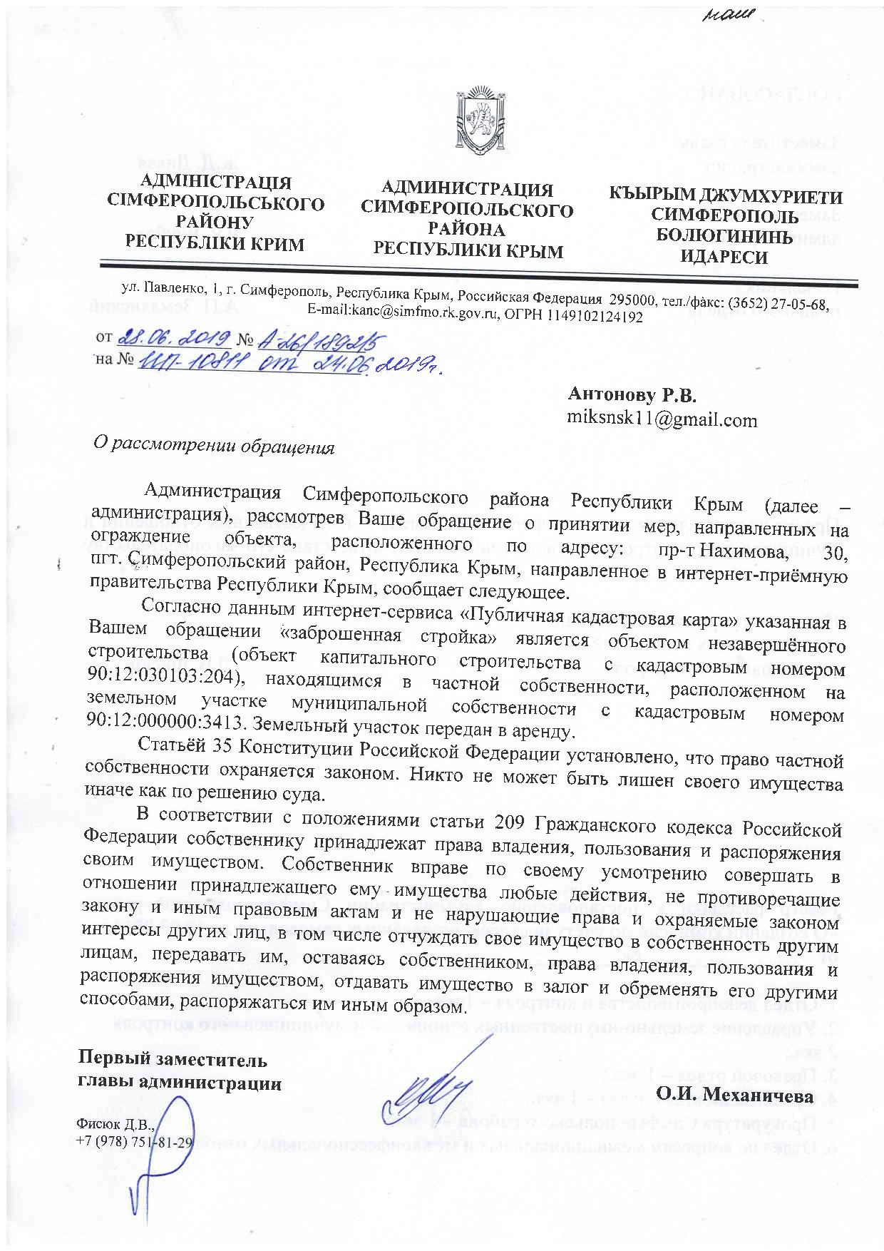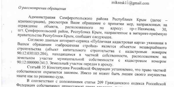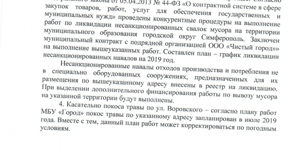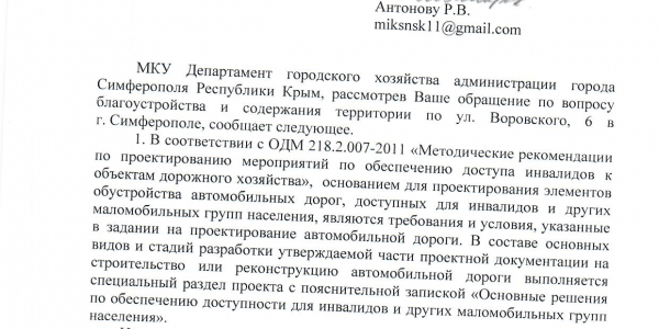 Жалоба на Администрацию Симферополя которая провоцирует своим бездействием хаотичную застройку города, в отсутствии каких либо требований к застройщикам жилых домов и офисных зданий по количеству подземных паркингов, озеленению. Статус: