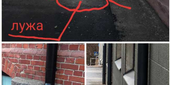 2. Отсутствуют водоотведение от здания, будут лужи, асфальт уплывет точно также как и Ваши полномочия в конце срока избрания. на фото контруклоны возле зданий, фото 1,фото 4.