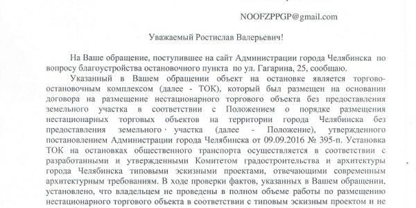 Номер жалобы:61012 Тип жалобы:Общественный транспорт Название объекта: Регион:Челябинская область Город:Челябинск Адрес:улица Гагарина, 25 Описание жалобы:Ненадлежащее состояние остановочного комплекса. Статус: