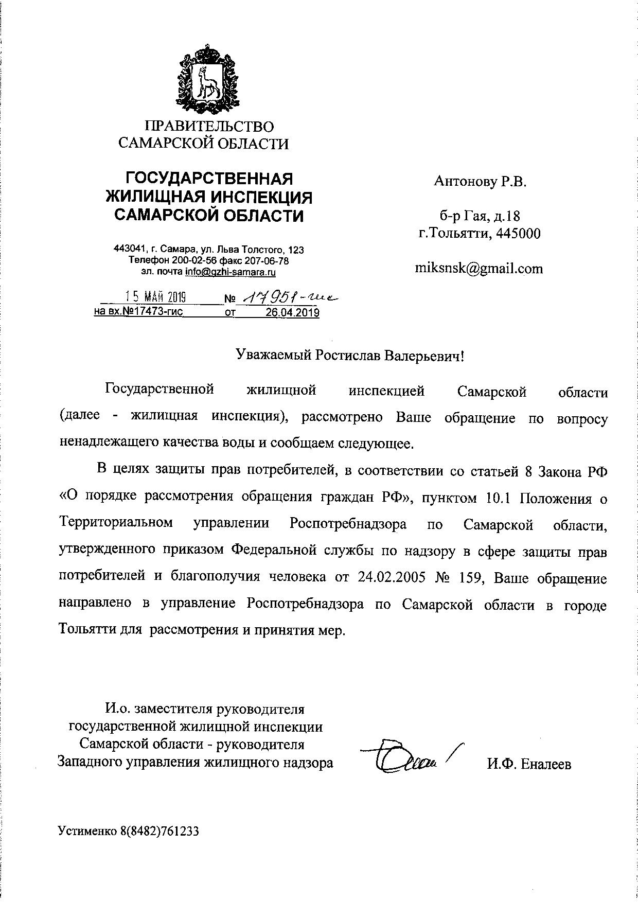 жалоба повторно направлена в ГЖИ и Роспотребнадзор Статус: Вложенные файлы: